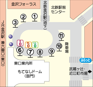 バス停「香林坊」で下車してください。